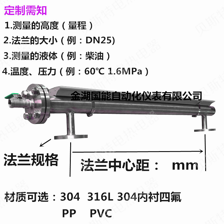 結構材質:液位計本體304或316L ,夾套304或普通不銹鋼