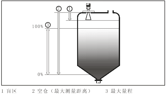 測量范圍從波束觸及罐低的那一點開始計算,但在特殊情況下,若罐低為凹型或錐形,當物位低于此點時無法進行測量。